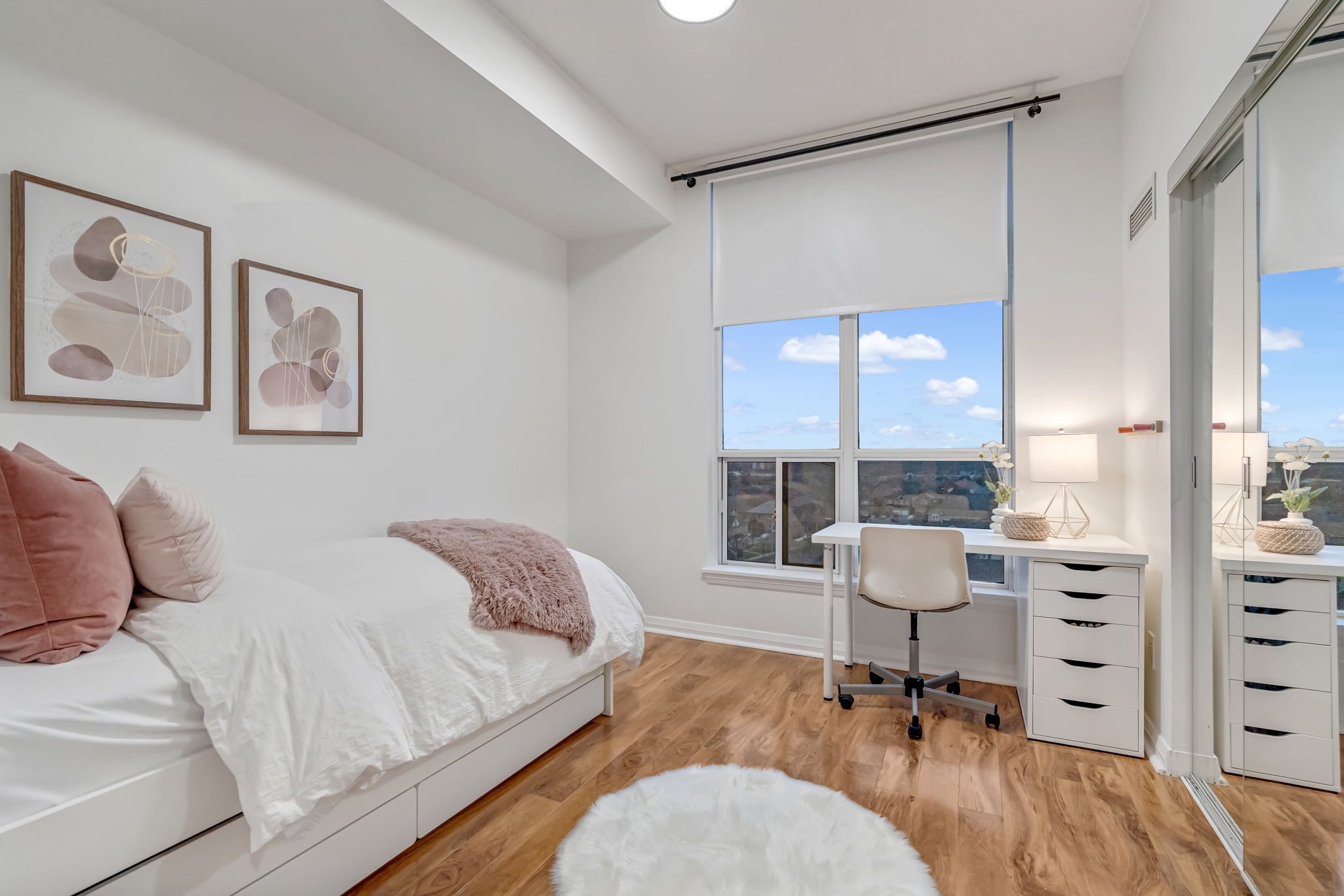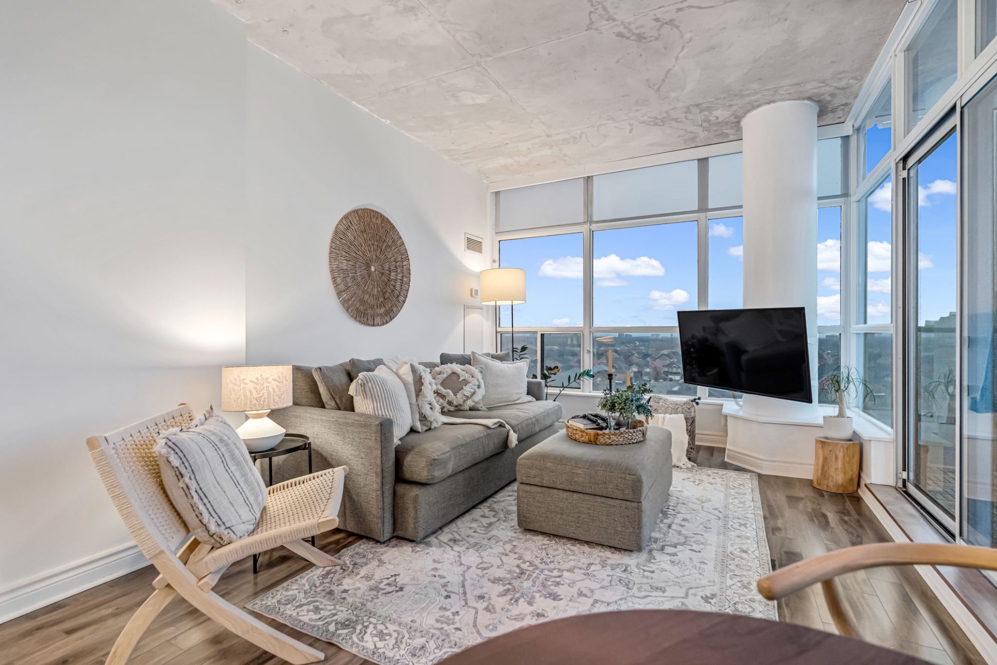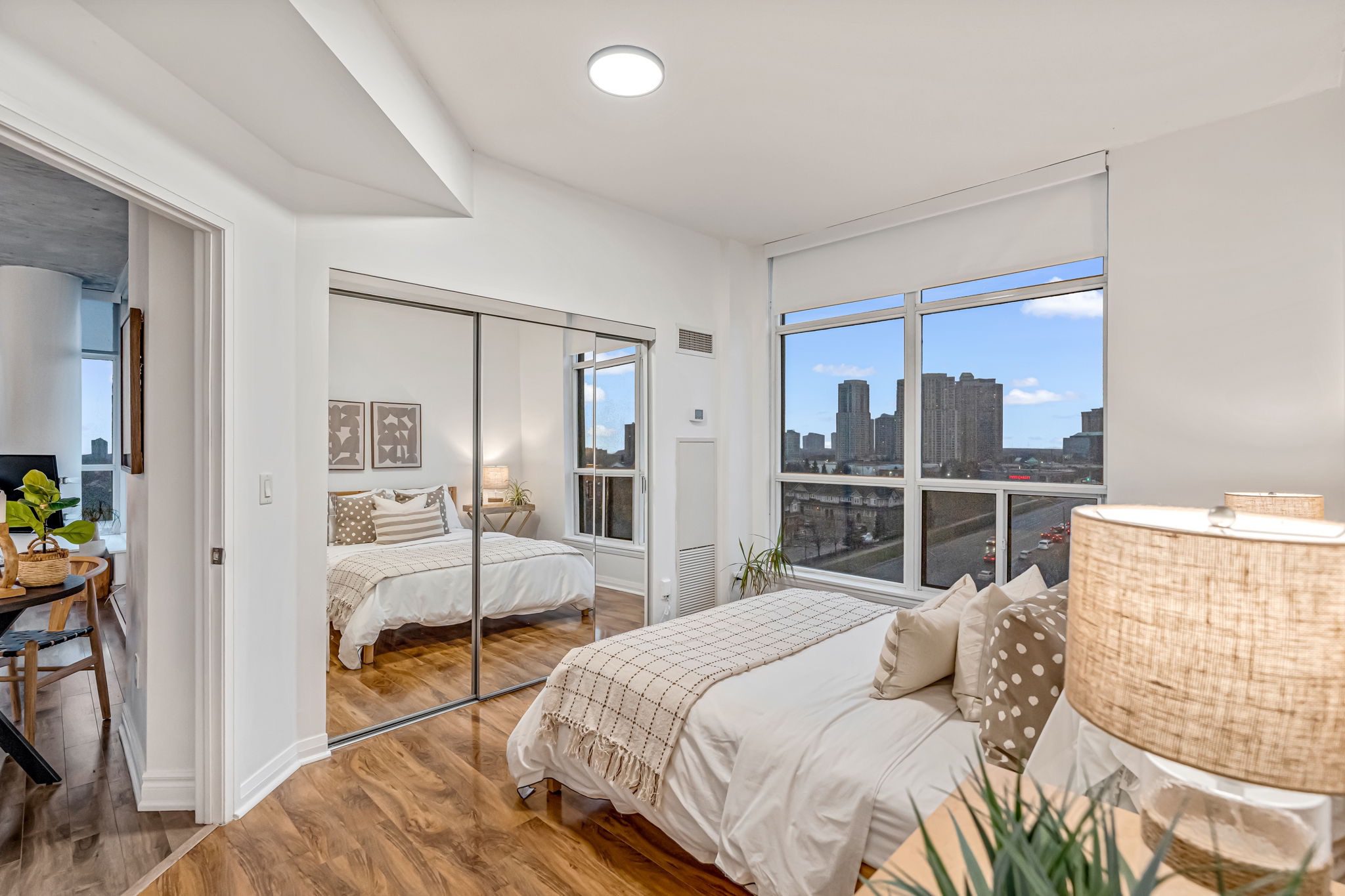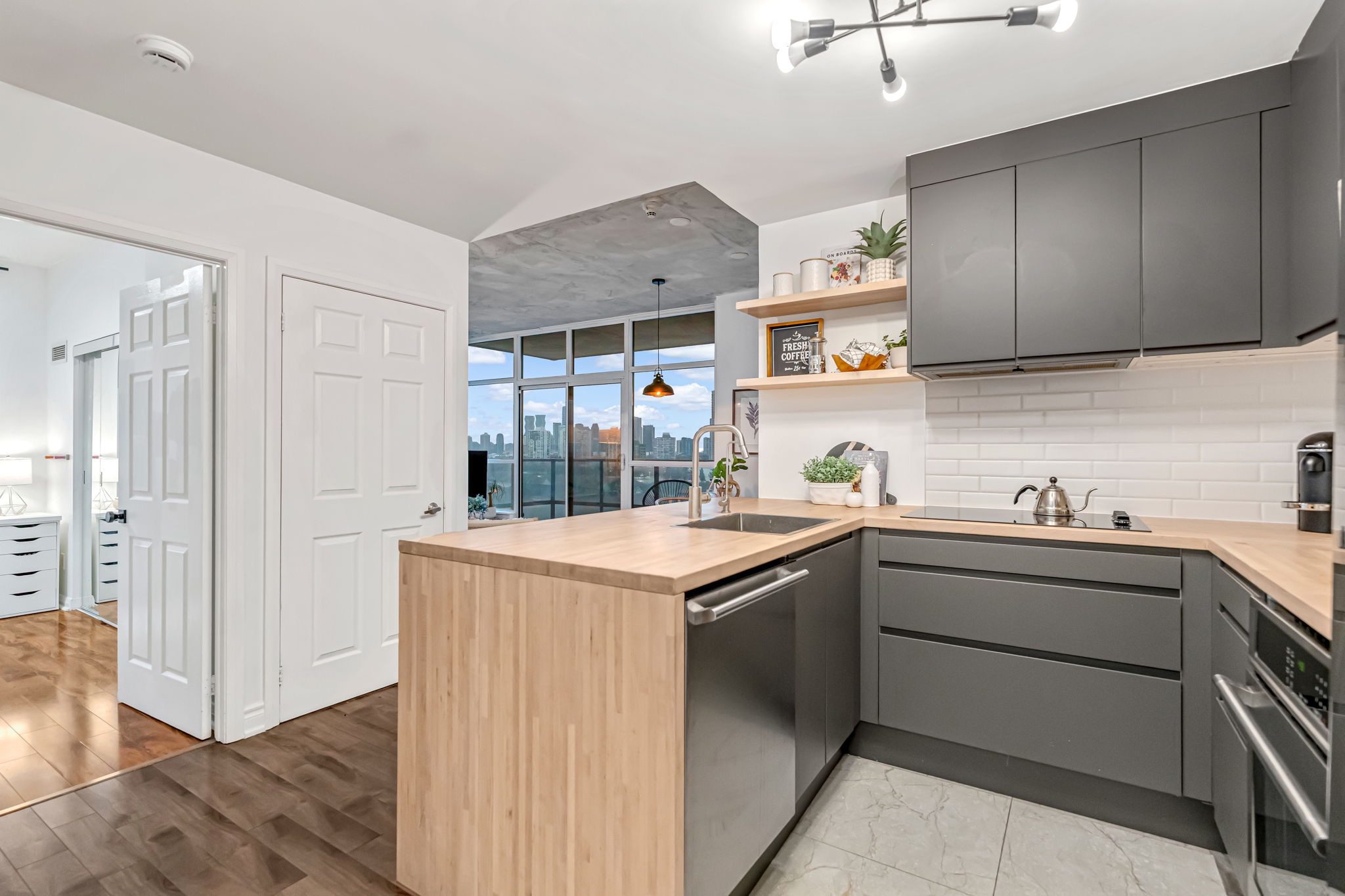 Beautifully updated 2-bedroom, 2-bathroom condo in the sought after Tuscany gate community, offering approx. 943 sq ft of bright, well-designed living space. This southwest-facing unit features a premium floorpan with 9-ft ceilings—higher than standard in the building—and unobstructed lake and skyline views, enjoyed from the open balcony. Renovated in 2022, the kitchen and living area showcase wood countertops, stainless steel appliances, a custom rustic-modern ceiling feature, fresh paint throughout, and blackout blinds. Enjoy the convenience of ensuite laundry complete with a new washer and dryer (2022). The unit also includes two owned underground parking spaces and an owned locker. Maintenance fees cover heat, water, central air, parking, building insurance, and common elements, all within a well-managed building close to transit, shopping, dining, and major highways. The building also offers various amenities such as an outdoor pool, gym, and a billiards room!