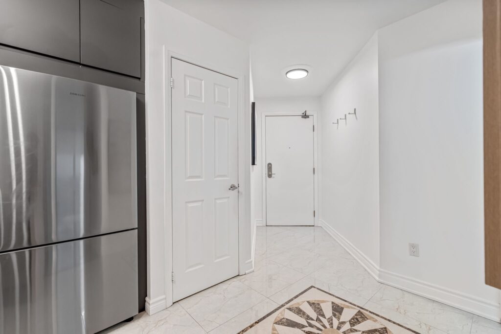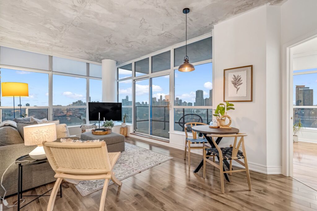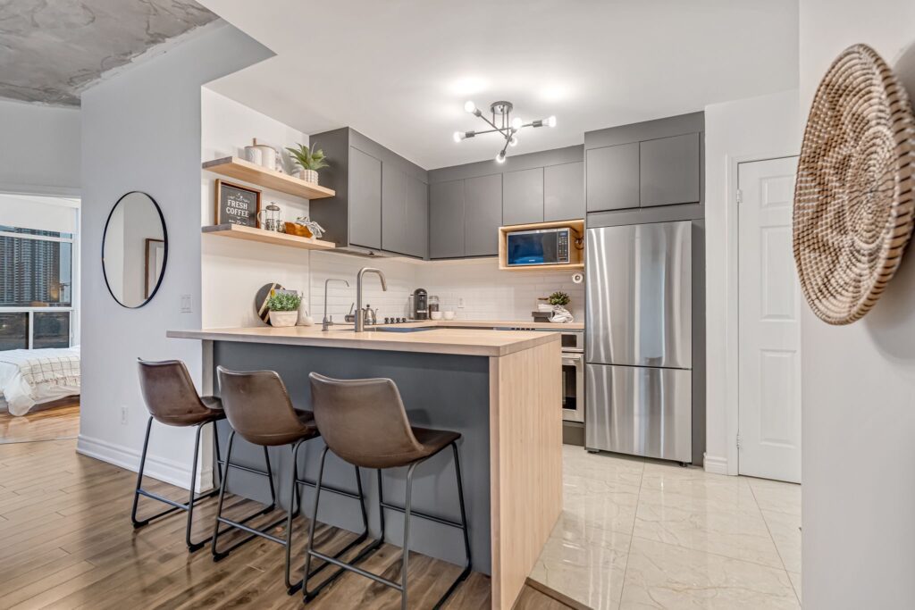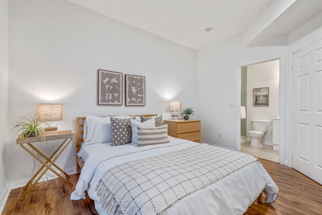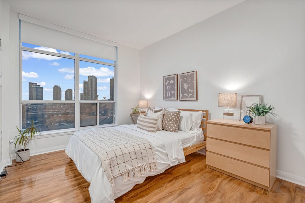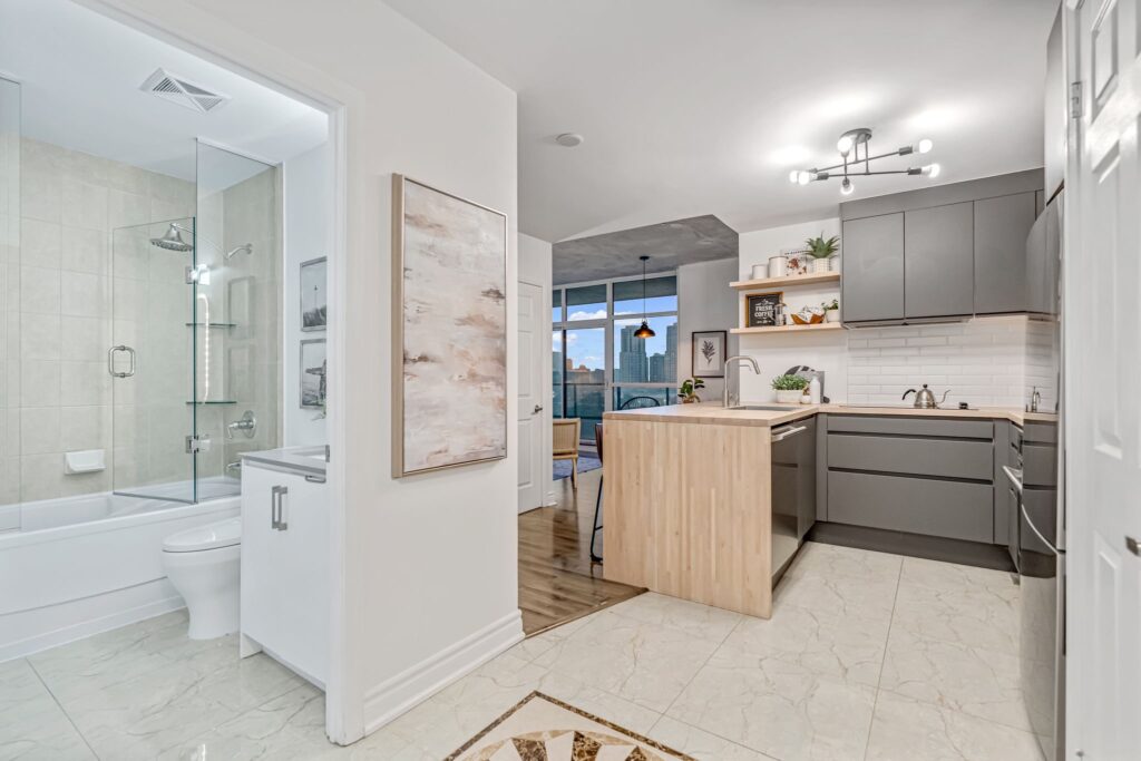 Beautifully updated 2-bedroom, 2-bathroom condo in the sought after Tuscany gate community, offering approx. 943 sq ft of bright, well-designed living space. This southwest-facing unit features a premium floorpan with 9-ft ceilings—higher than standard in the building—and unobstructed lake and skyline views, enjoyed from the open balcony. Renovated in 2022, the kitchen and living area showcase wood countertops, stainless steel appliances, a custom rustic-modern ceiling feature, fresh paint throughout, and blackout blinds. Enjoy the convenience of ensuite laundry complete with a new washer and dryer (2022). The unit also includes two owned underground parking spaces and an owned locker. Maintenance fees cover heat, water, central air, parking, building insurance, and common elements, all within a well-managed building close to transit, shopping, dining, and major highways. The building also offers various amenities such as an outdoor pool, gym, and a billiards room!