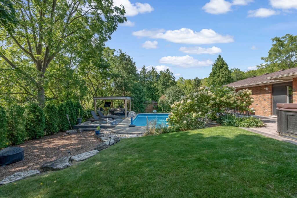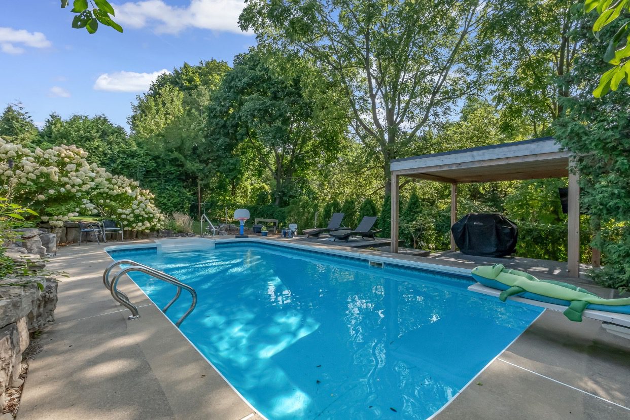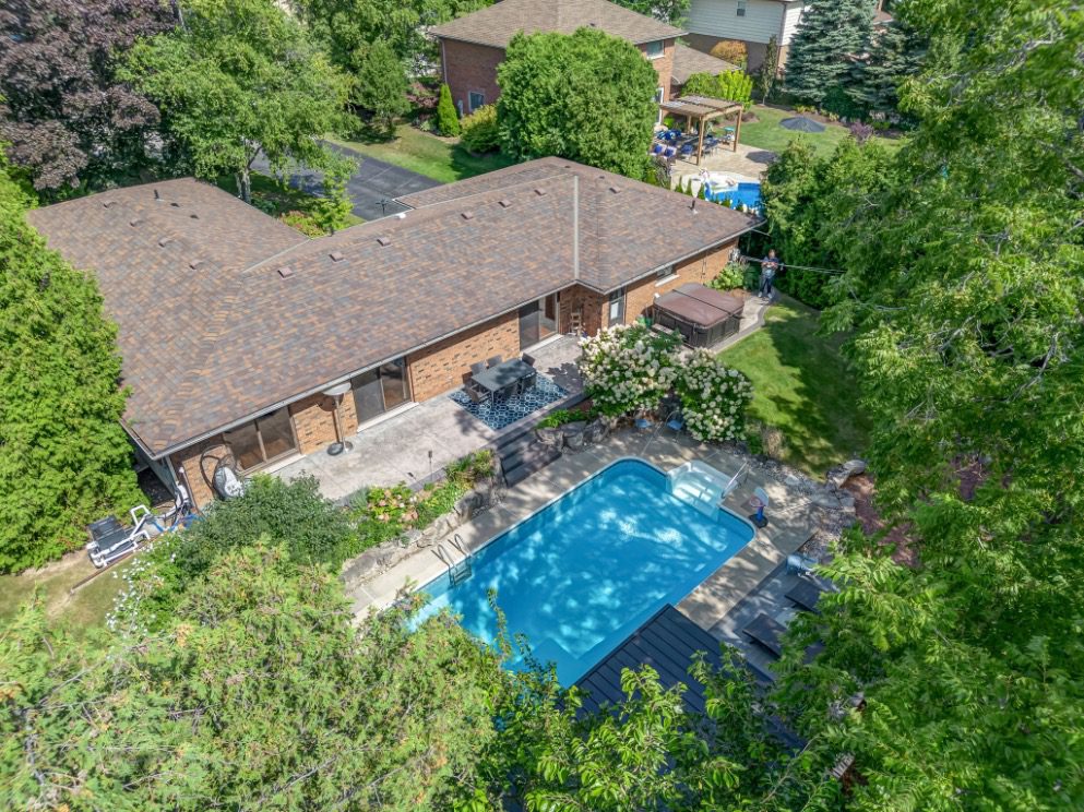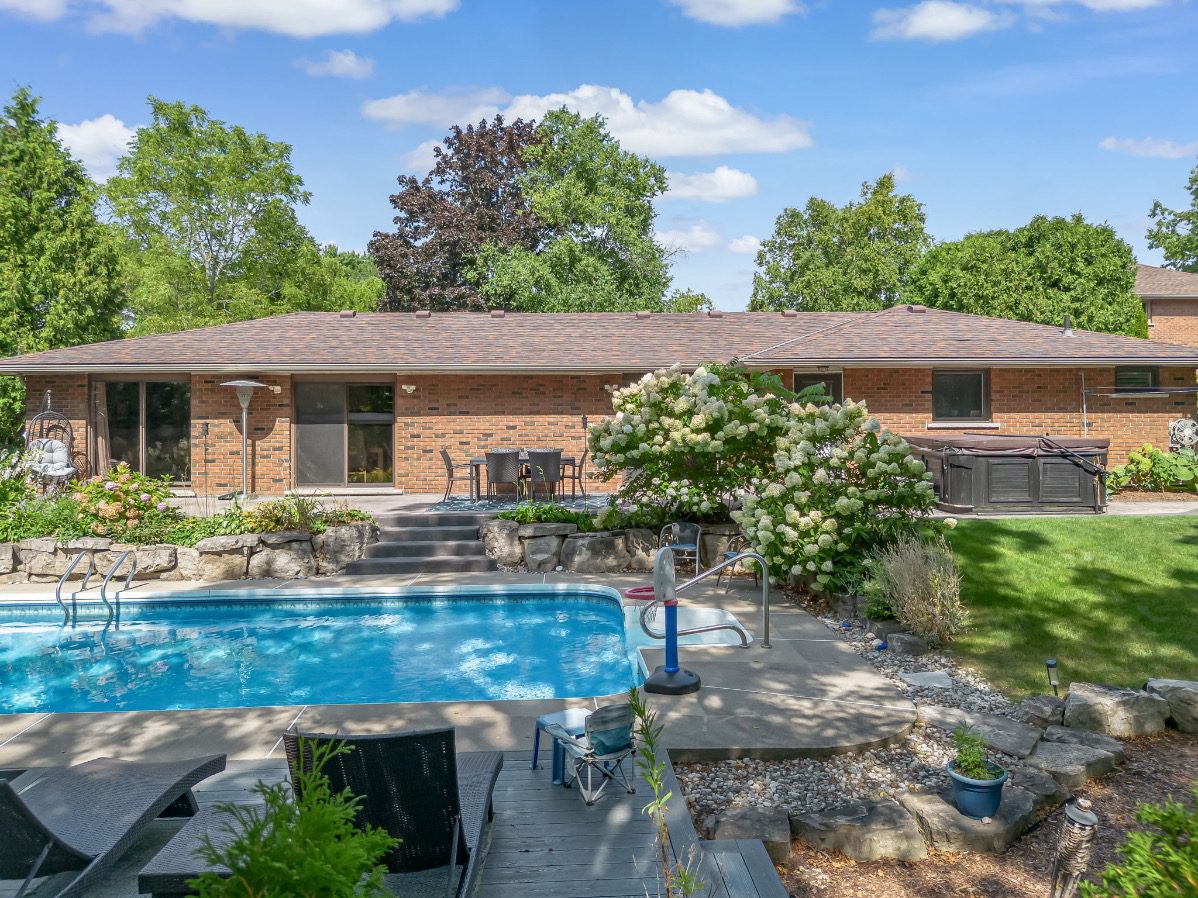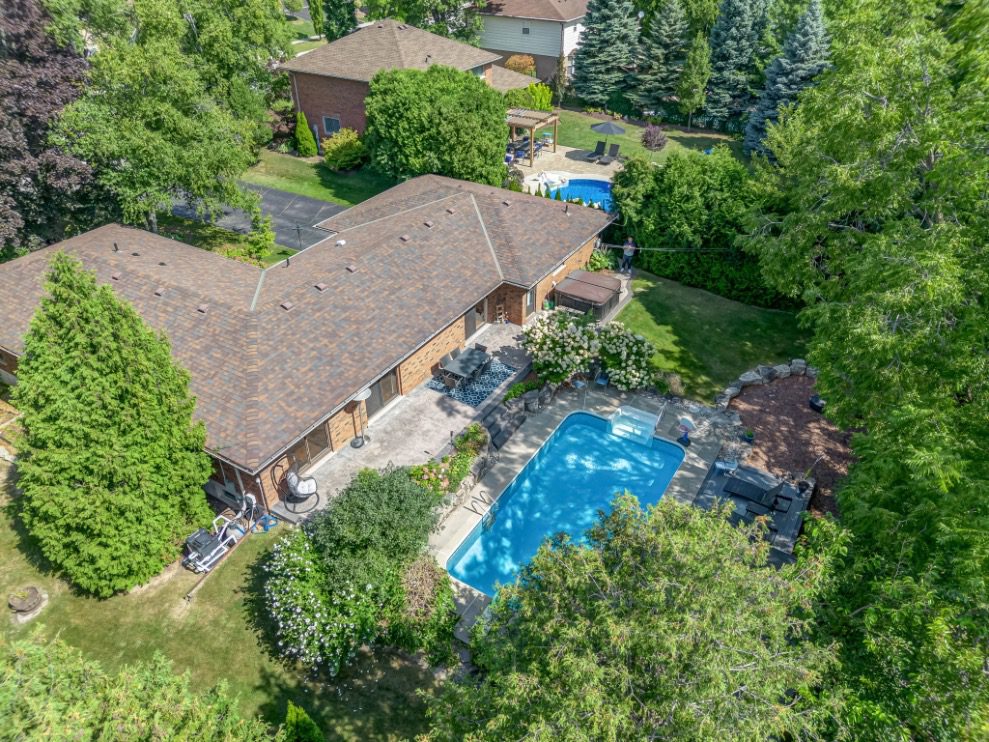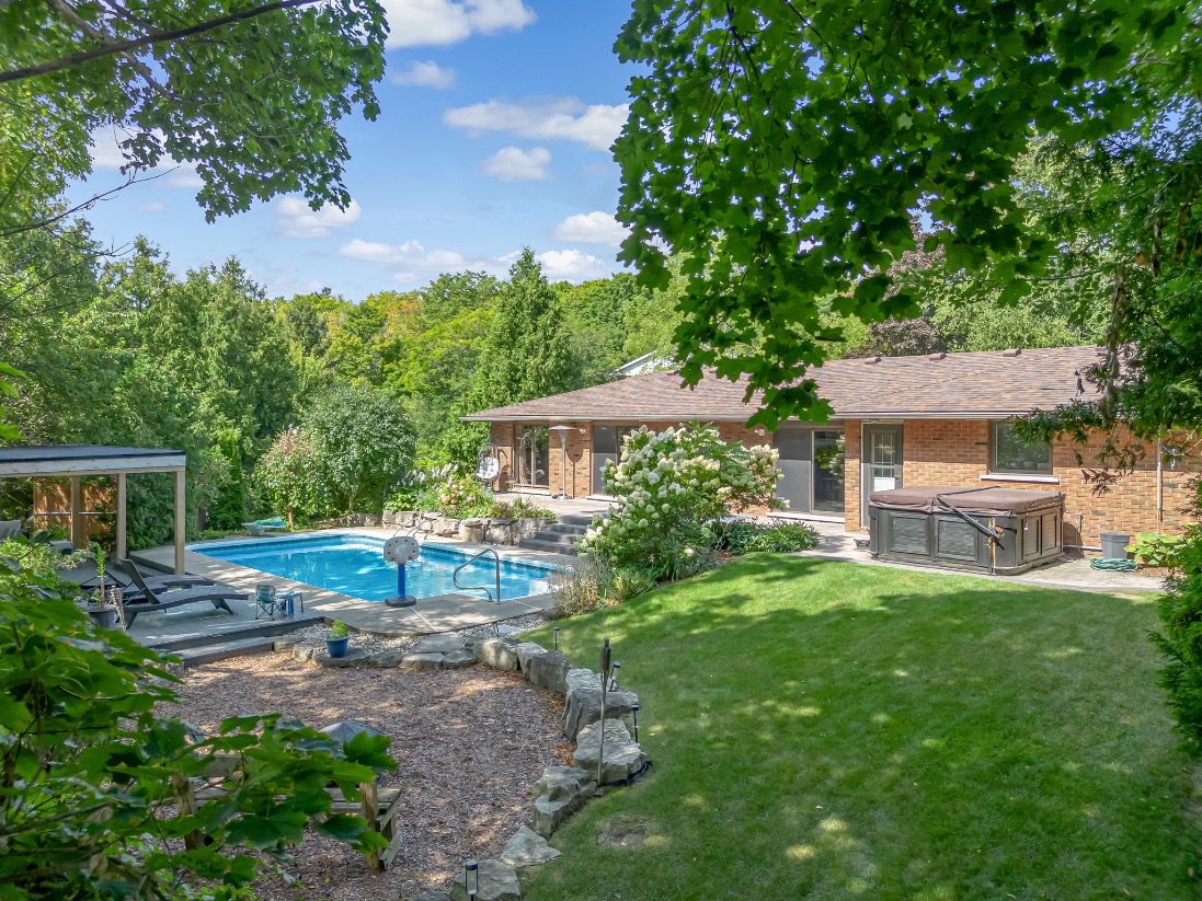 Welcome to a rare opportunity in one of Waterdown’s most peaceful, family-oriented neighbourhoods. Tucked away from through traffic, this quiet and private 3+1 bedroom, 2+2 bathroom home offers over 3,000 total sq ft of thoughtfully designed living space on a mature, beautifully landscaped lot. Inside, you’ll find acacia engineered hardwood flooring, quartz kitchen countertops, updated bathrooms, newer windows and patio doors, along with a new furnace and A/C. The spacious recreation room with custom bar is perfect for entertaining, while the backyard oasis features a heated saltwater pool, stamped concrete patio, and lush perennial gardens. An extra-long driveway and full-sized double garage provide ample parking, with space for an RV or boat. A true family home in a one-of-a-kind Waterdown setting.