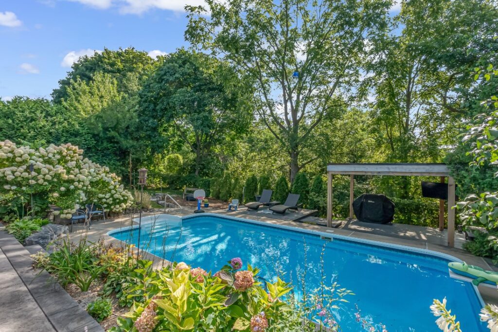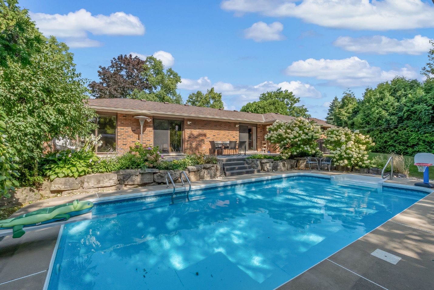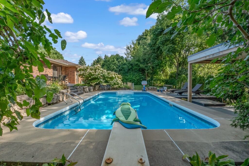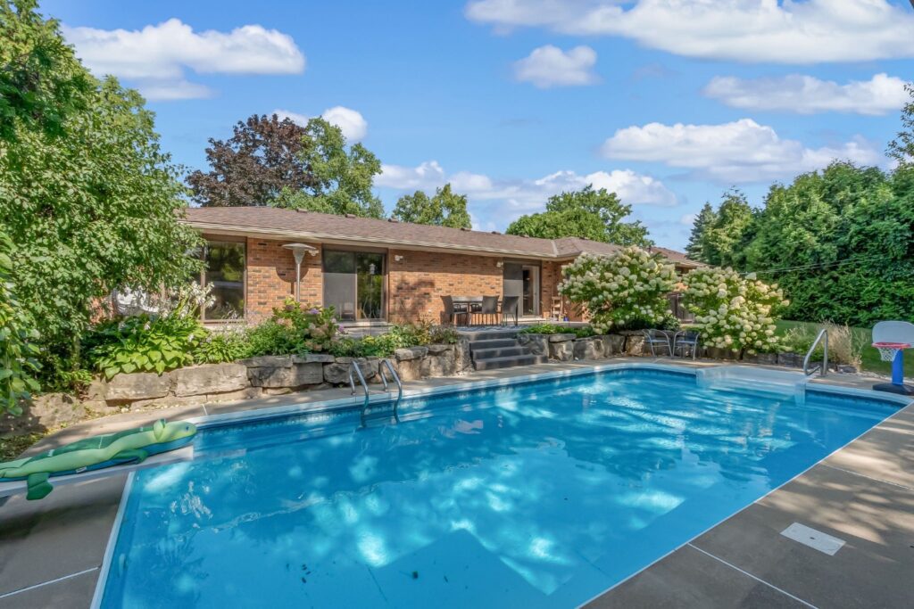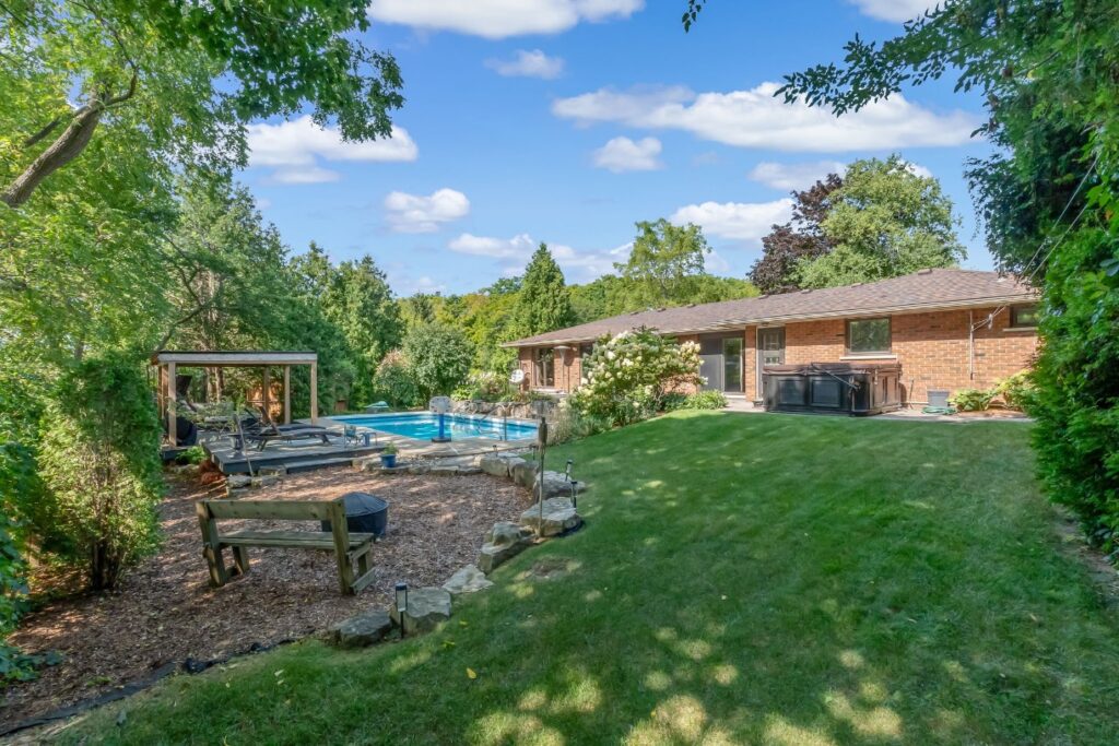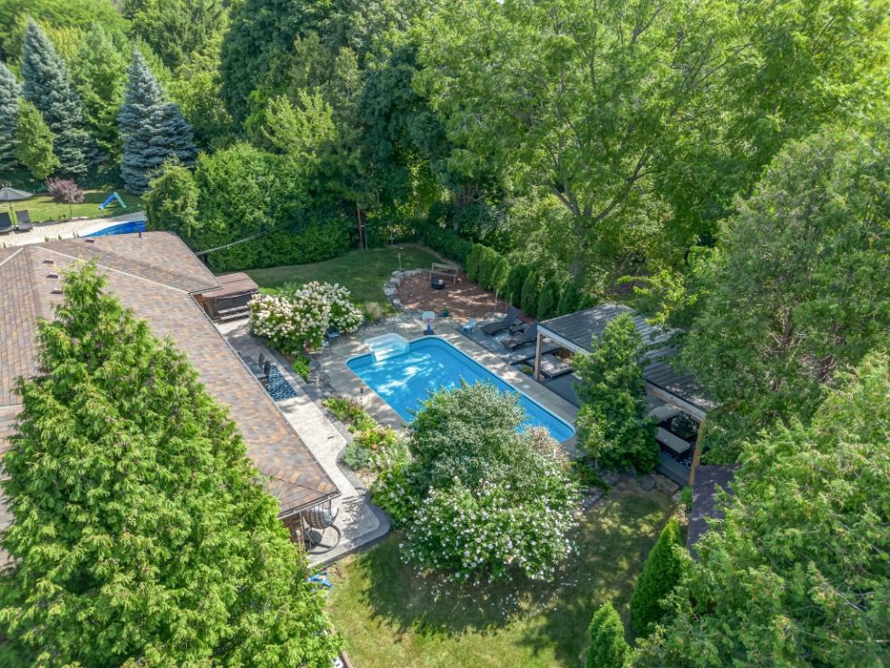 Welcome to a rare opportunity in one of Waterdown’s most peaceful, family-oriented neighbourhoods. Tucked away from through traffic, this quiet and private 3+1 bedroom, 2+2 bathroom home offers over 3,000 total sq ft of thoughtfully designed living space on a mature, beautifully landscaped lot. Inside, you’ll find acacia engineered hardwood flooring, quartz kitchen countertops, updated bathrooms, newer windows and patio doors, along with a new furnace and A/C. The spacious recreation room with custom bar is perfect for entertaining, while the backyard oasis features a heated saltwater pool, stamped concrete patio, and lush perennial gardens. An extra-long driveway and full-sized double garage provide ample parking, with space for an RV or boat. A true family home in a one-of-a-kind Waterdown setting.