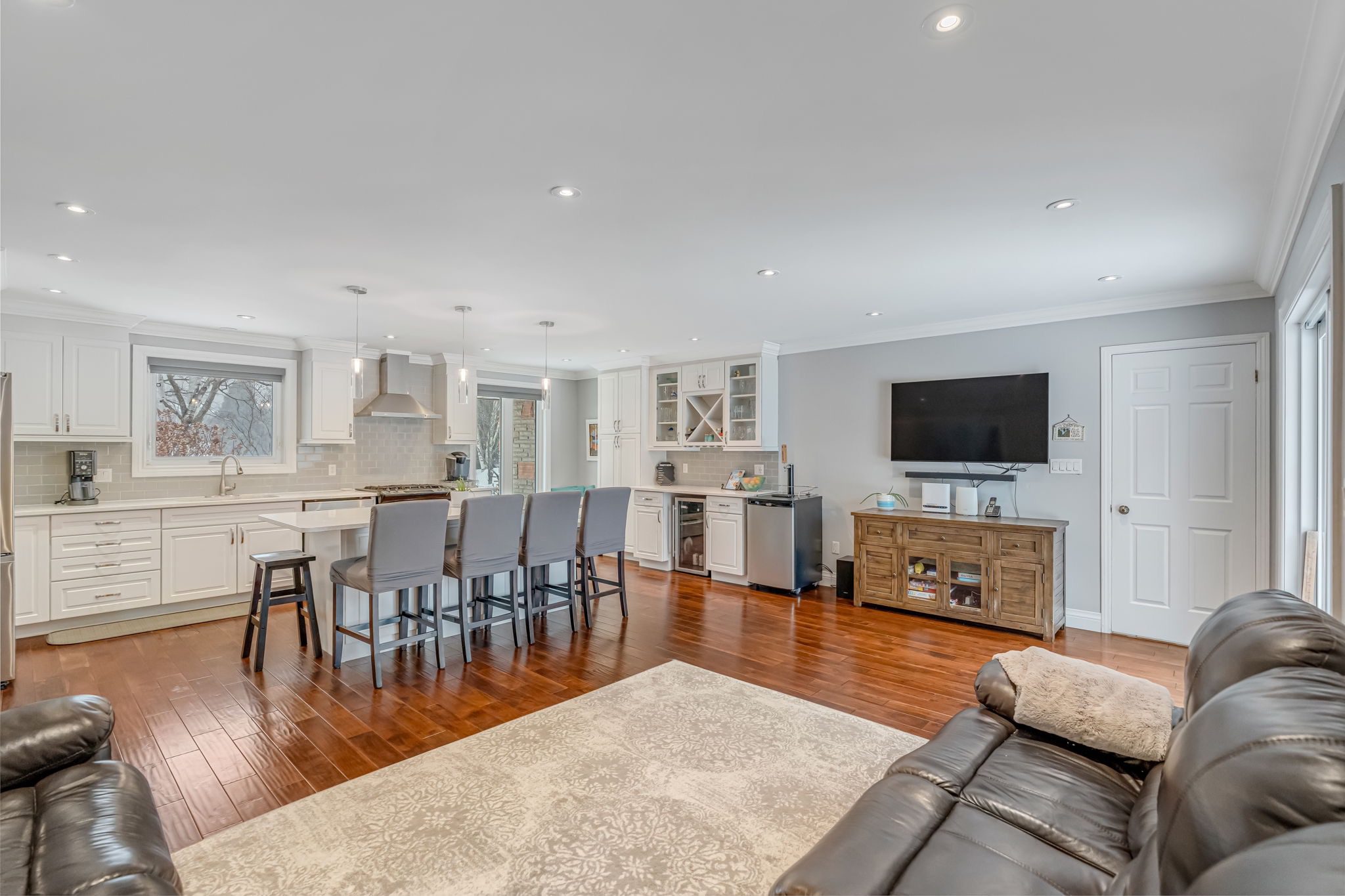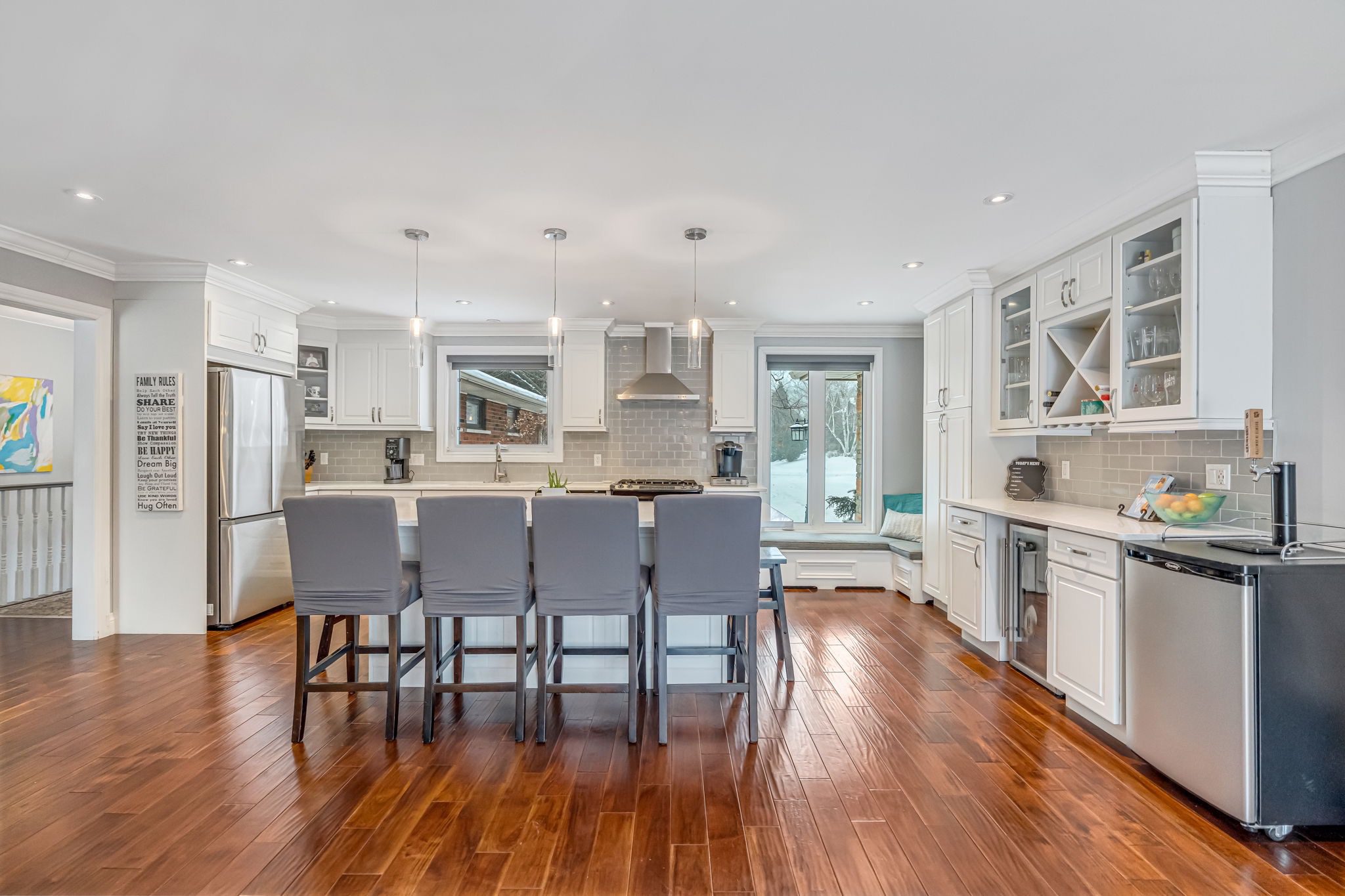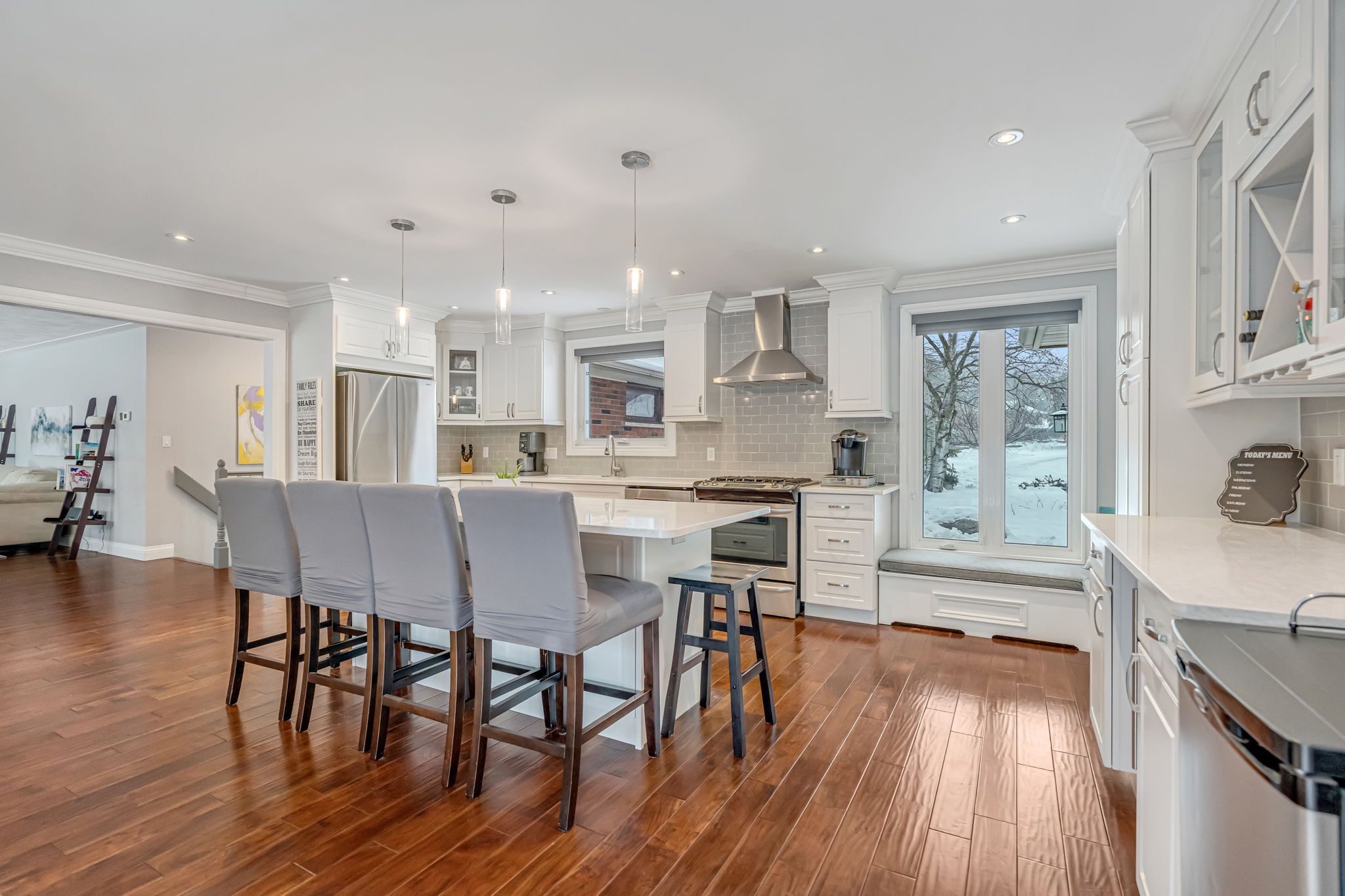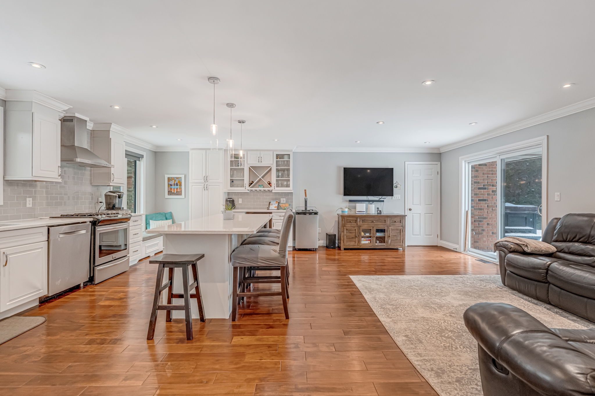 Welcome to a rare opportunity in one of Waterdown’s most peaceful, family-oriented neighbourhoods. Tucked away from through traffic, this quiet and private 3+1 bedroom, 2+2 bathroom home offers over 3,000 total sq ft of thoughtfully designed living space on a mature, beautifully landscaped lot. Inside, you’ll find acacia engineered hardwood flooring, quartz kitchen countertops, updated bathrooms, newer windows and patio doors, along with a new furnace and A/C. The spacious recreation room with custom bar is perfect for entertaining, while the backyard oasis features a heated saltwater pool, stamped concrete patio, and lush perennial gardens. An extra-long driveway and full-sized double garage provide ample parking, with space for an RV or boat. A true family home in a one-of-a-kind Waterdown setting.