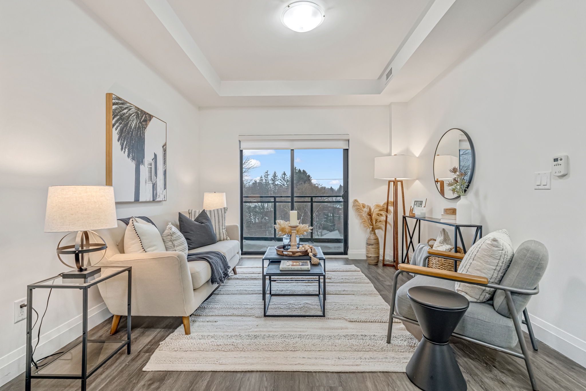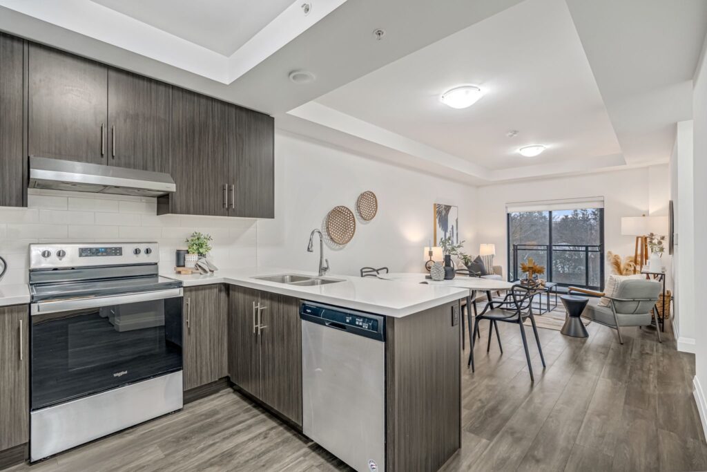 Welcome to this beautifully upgraded 700sqft, 1 bedroom + den condo in the highly desirable View Condos of Waterdown. Ideally located close to the downtown core, highways, trails, schools, shopping, and dining, this modern suite offers stainless steel appliances, a breakfast bar, and a spacious bedroom with ample closet space. Step out onto your private balcony and enjoy sweeping views of Hamilton Harbour, the Skyway, and Lake Ontario. Building amenities include concierge, fitness centre, bike room, pet wash station, rooftop terrace, media/party room, and EV charging. Includes parking (P1-19) and locker (#302). A fantastic opportunity for first-time buyers or investors alike.